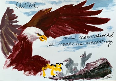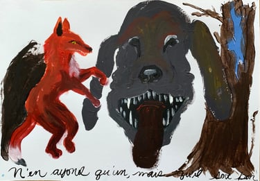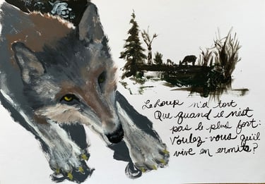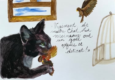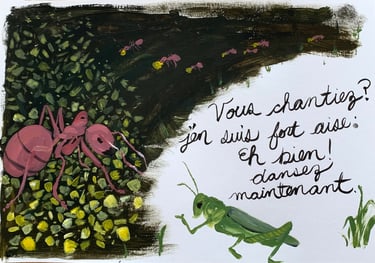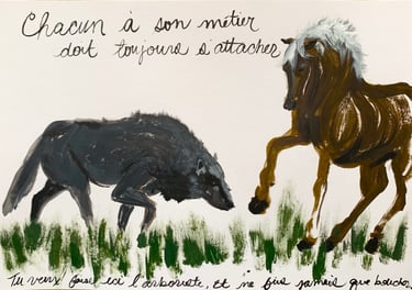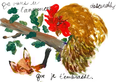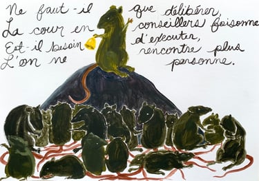 Acrylic on paper inspired by the classic Fables from La Fontaine.
